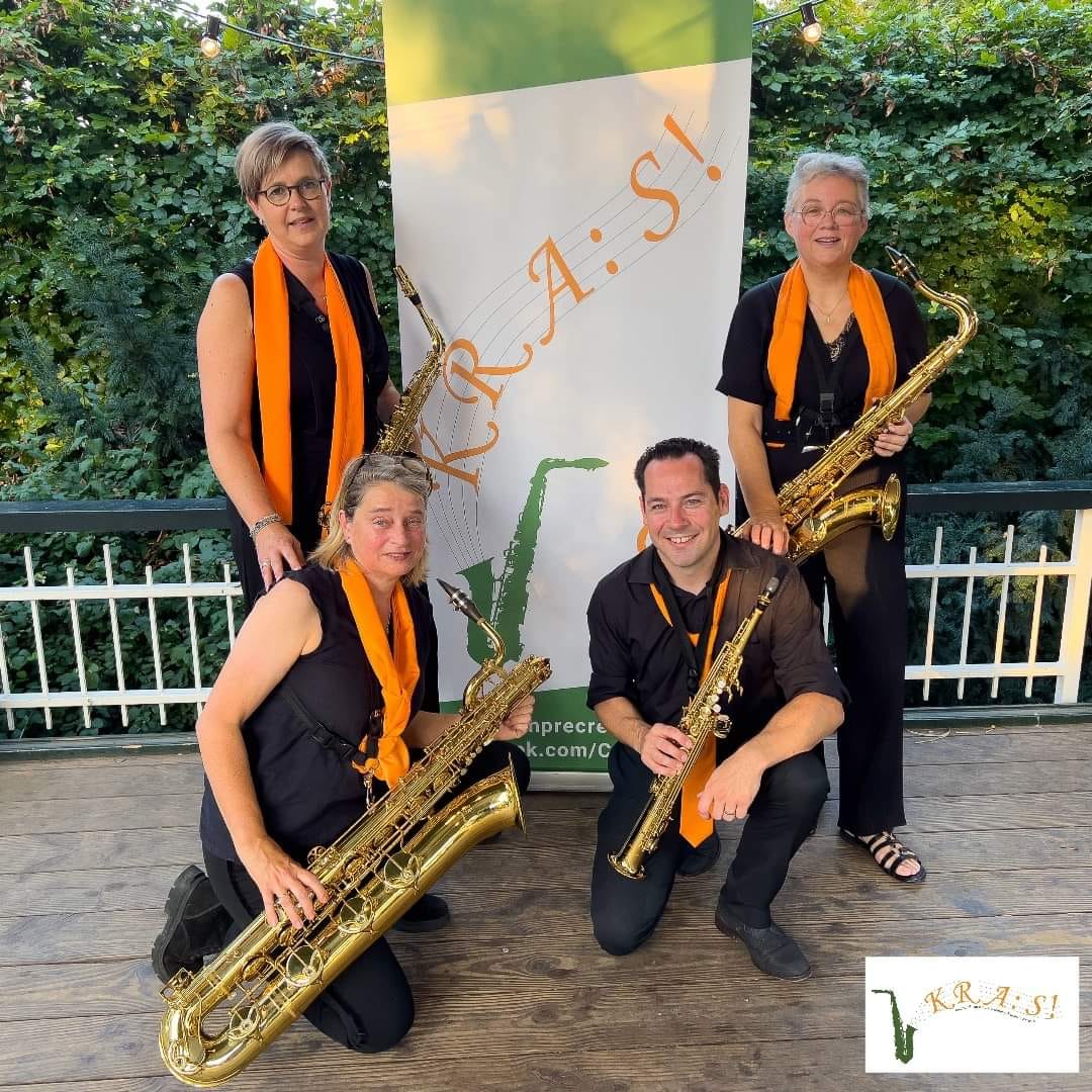 Donderdag a.s. speelt Saxofoonkwartet KRA:S! op de Muziekkoepel Overdinkel vanaf 19.30 uur.